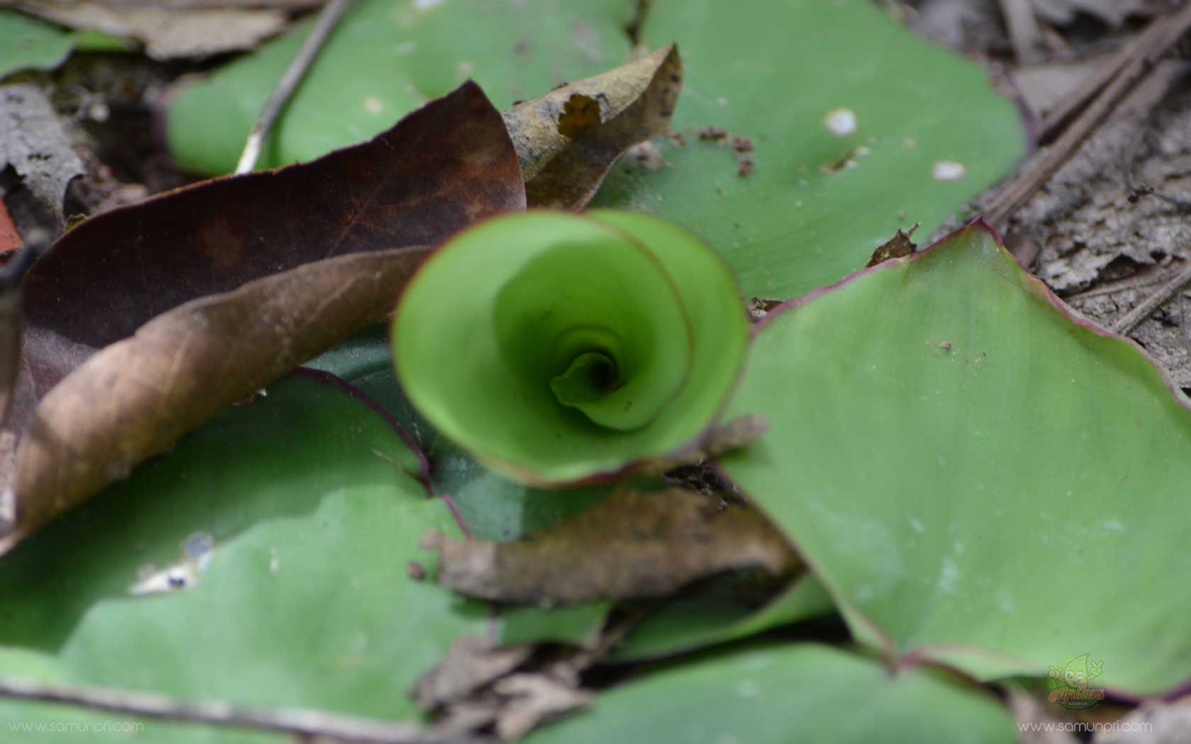 - ใบเปราะป่า ใบเป็นใบเดี่ยว ใบอ่อนม้วนเป็นกระบอกตั้งขึ้น ใบแก่แผ่ราบบนหน้าดิน ไม่มีก้านใบ ต้นหนึ่ง